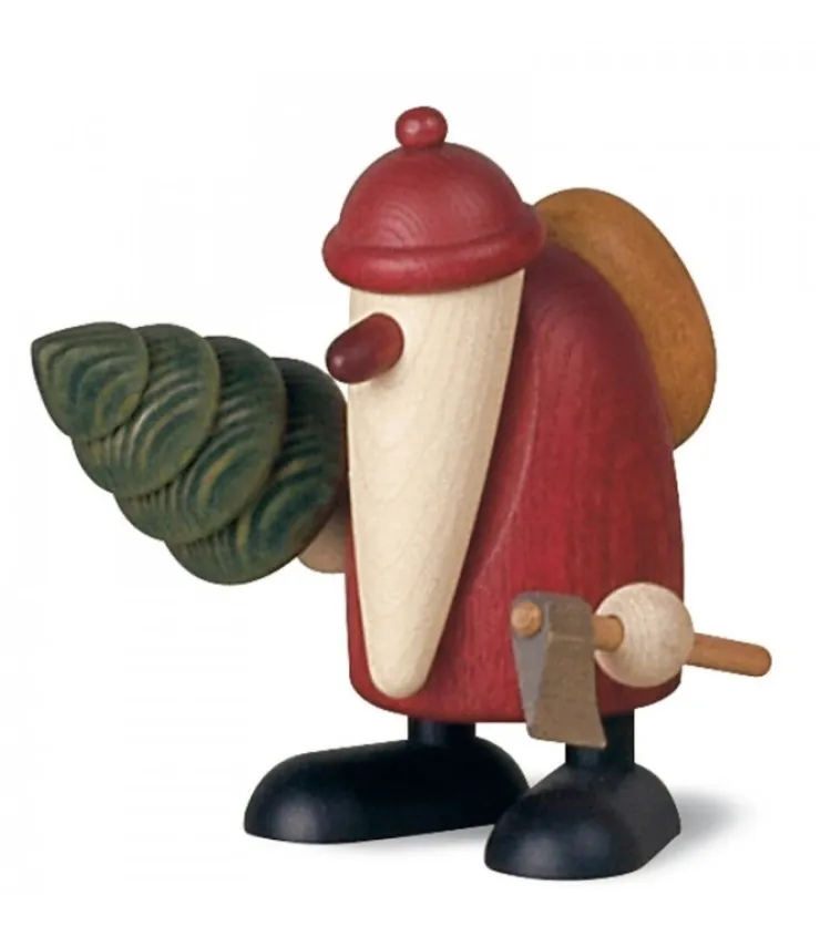 Père Noël Rouge.Père Noël En Bois Avec Sapin Sous Le BrasFabrication Artisanale Allemande.