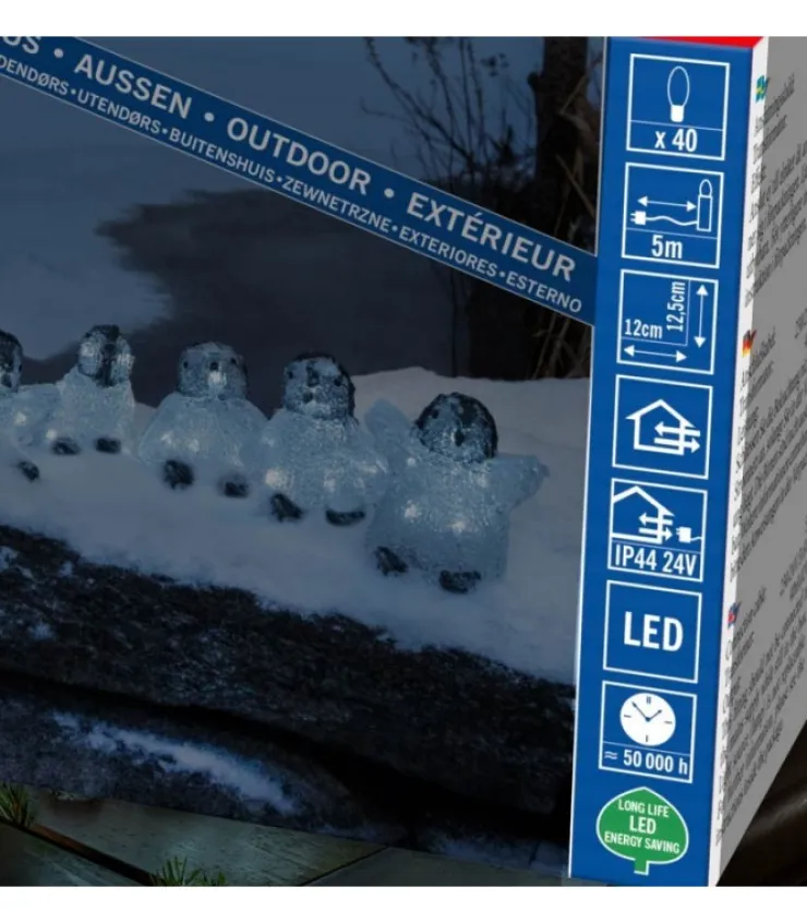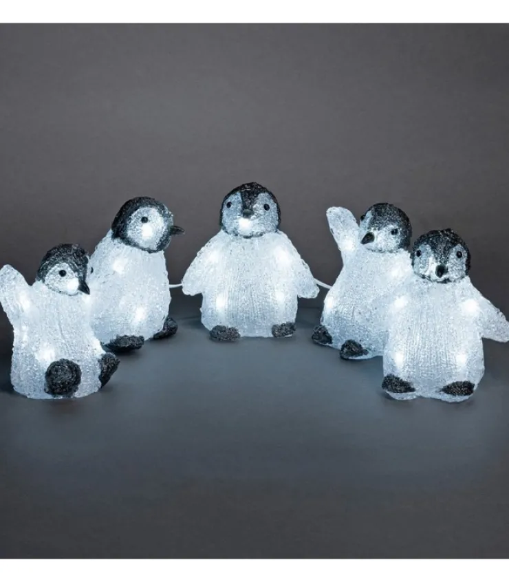 Bebe Pingouin A Led En Acrylique, Lot De 5, 40 Diodes Blanc Froid.