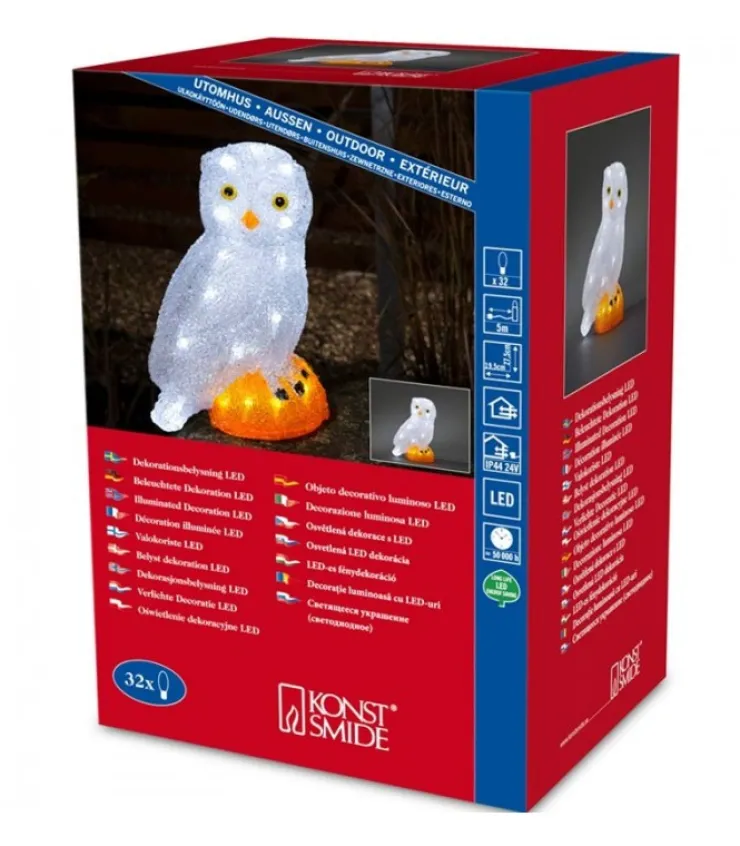 Chouette A Led En Acrylique, Petit Modele, 32 Diodes Blanc Froid.