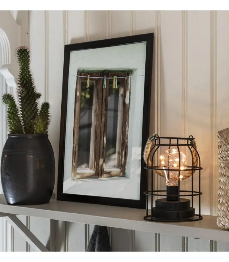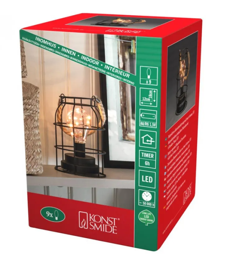 Lanterne En Metal Ronde Avec Ampoule Contenant 9 Diodes Led Ambrees, Hauteur 18 Cm.