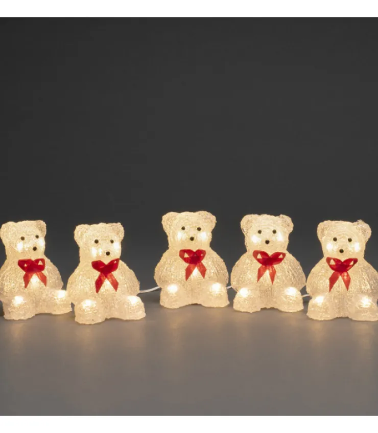 Décoration De Noël Extérieur.Lots De 5 Petits Oursons Lumineux A Led En Acrylique Avec Ruban Rouge, 40 Diodes Blanc C…
