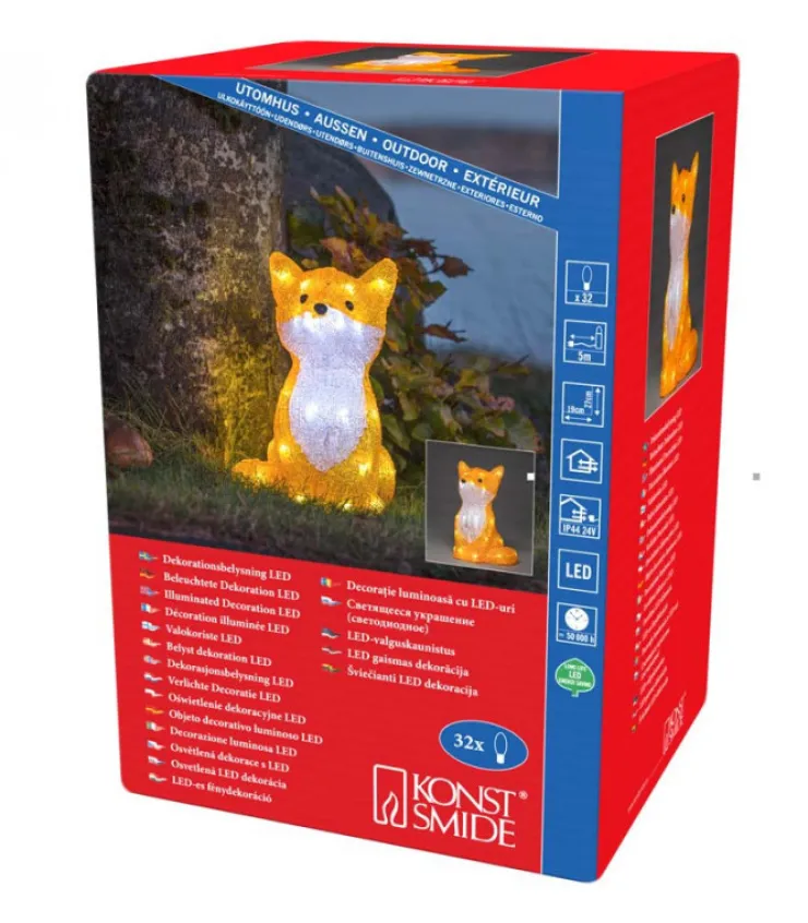 Renard A Led En Acrylique, 32 Diodes Blanc Froid.
