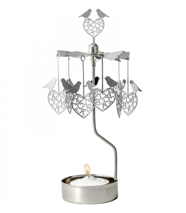 Bougeoir Carrousel Oiseau Amoureux En Metal Chrome.Fonctionne Avec 1 Bougie De Type Chauffe-Plat (Fournie).Bougies De Re…