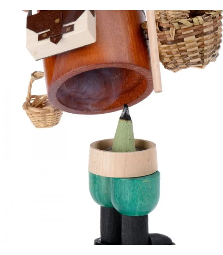 Personnage Brule-Encens Fumeur De Pipe Allemand En Bois.Camelot Vendeur De Paniers En Osier.A Utiliser Avec Cone De Sent…