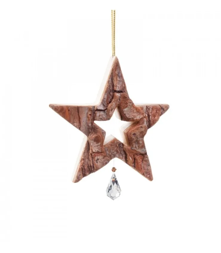 Etoile Sapin De Noël.Etoile En Bois A Suspendre Taillee Dans Une Ecorce De Rondin Avec Cristal Swarovski.Fourni Avec Un…