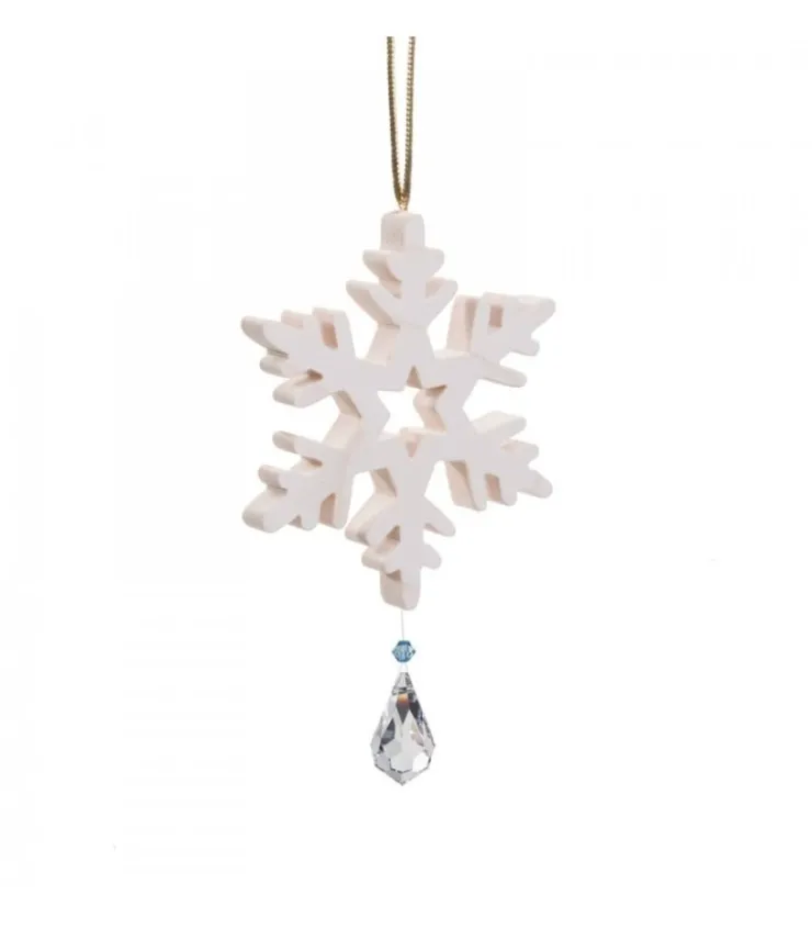 Décoration Pour Sapin, Flocon De Neige En Bois D’Erable Avec Cristal Swarovski.