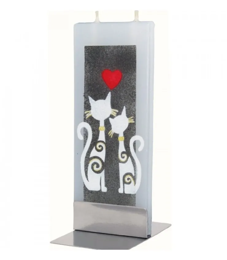 Bougie De Noël Décorative Double Meche, Motif Chats Et Coeur.