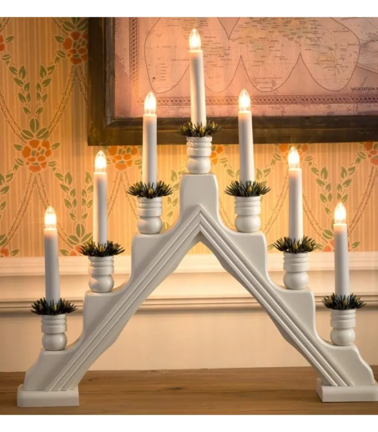 Décoration Lumineuse Noël.Chandelier Pyramide A Bougie Electrique Avec Décorations, Couleur Blanc.7 Ampoules Claires …