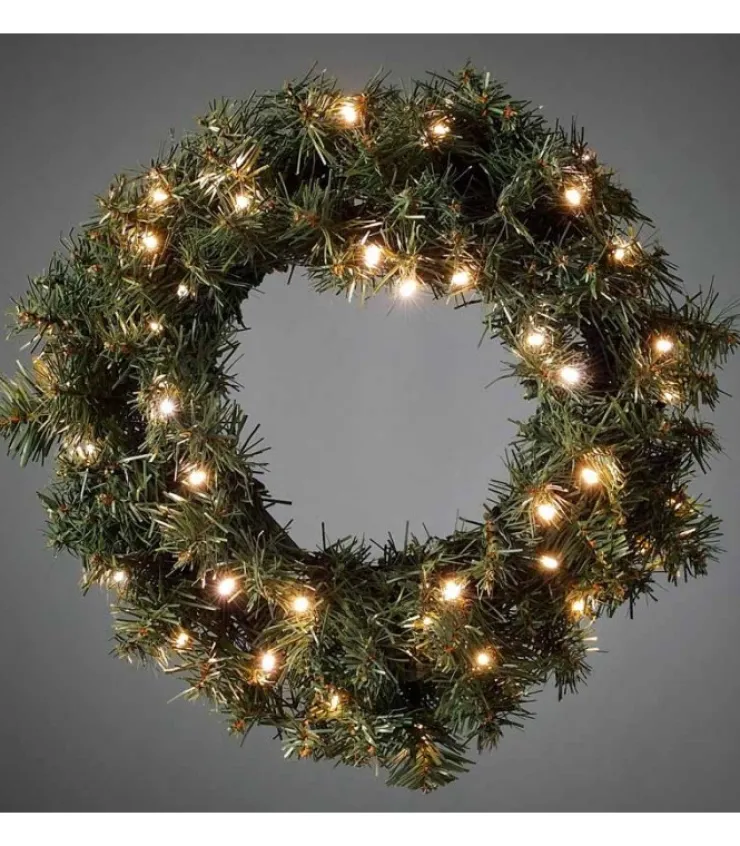 Couronne De Sapin A Led Diametre 45 Cm A Suspendre A Une Porte De Maison Comme Illumination De Noël. 40 Diodes Ambrees.