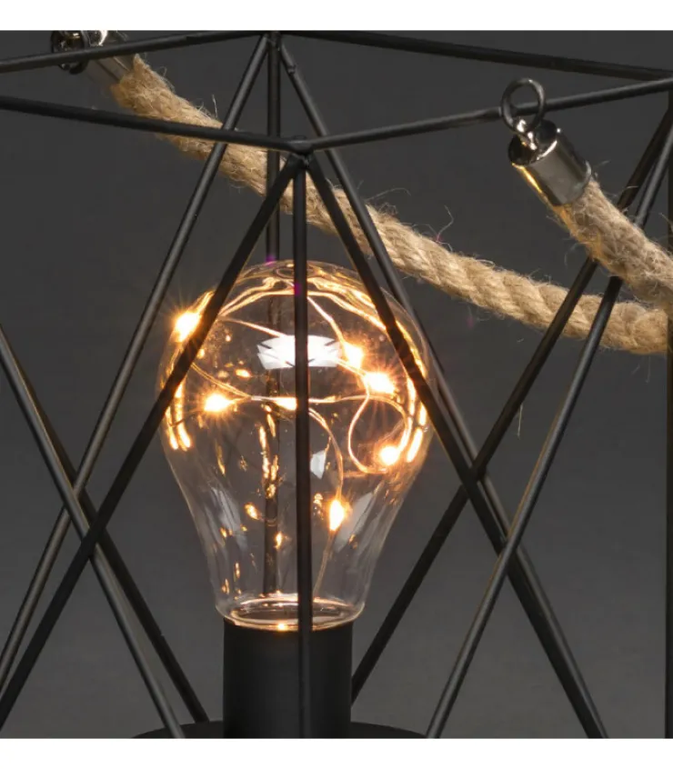 Lanterne En Metal Carree Avec Ampoule Contenant 9 Diodes Led Ambrees, Hauteur 19 Cm.
