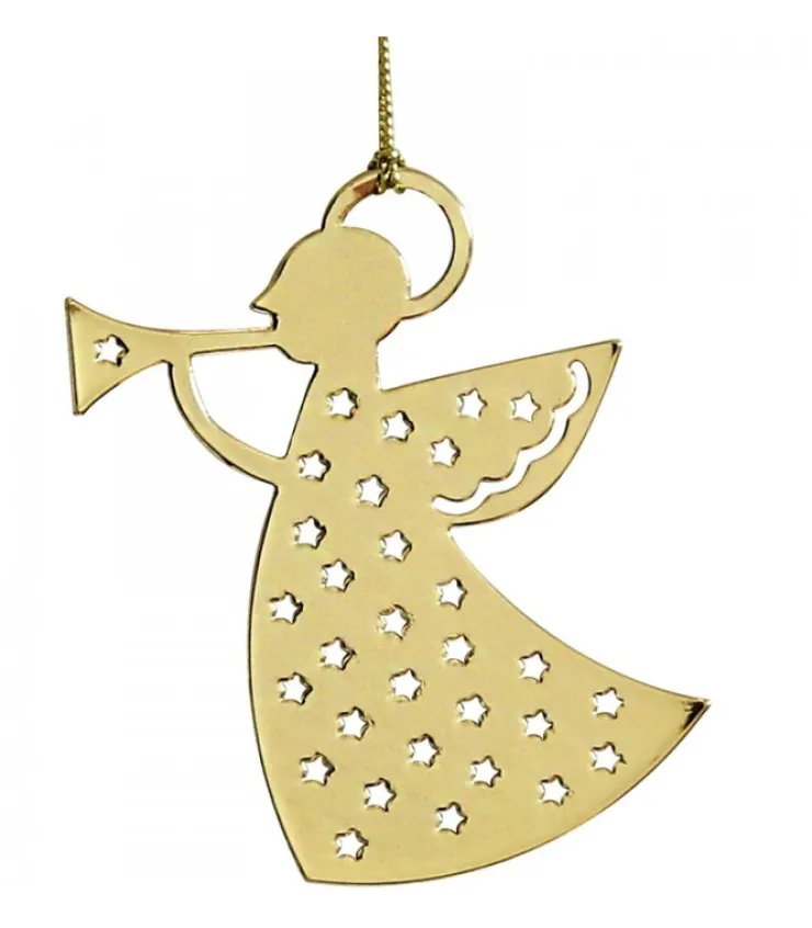 Ange Avec Trompette En Metal Dore A Suspendre.Déco De Noël Scandinave Design.Fourni Avec Un Cordon Pour L’Accrocher.