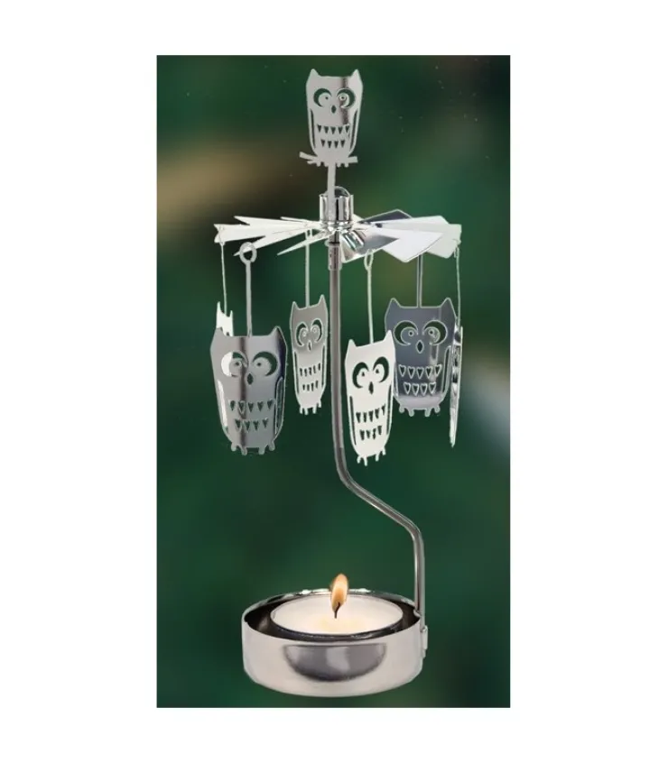Bougeoir Carrousel Chouette En Metal Chrome.Fonctionne Avec 1 Bougie De Type Chauffe-Plat (Fournie).Bougies De Rechanges…
