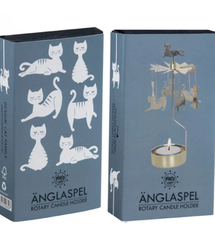 Bougeoir Carrousel Famille De Chats En Metal Dore.Fonctionne Avec 1 Bougie De Type Chauffe-Plat (Fournie).Bougies De Rec…
