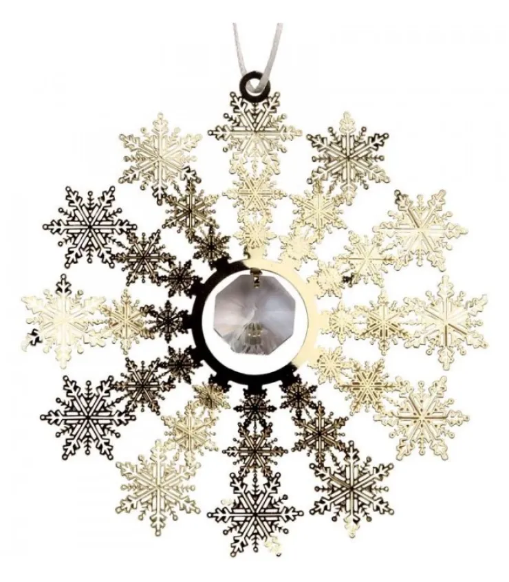 Flocon De Neige En Metal Dore Avec Cristal A Suspendre.