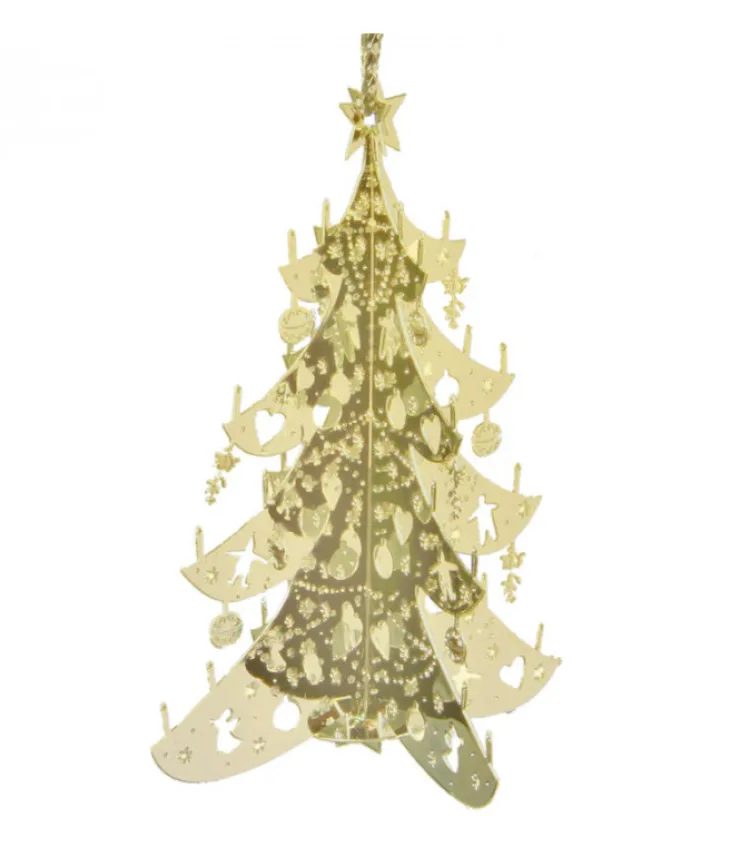 Sapin De Noël En Metal Dore A Suspendre.Déco De Noël Scandinave Design.Fourni Avec Un Cordon Pour L’Accrocher.