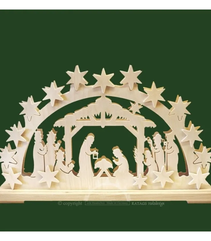 Ratags, décos de Noël lumineuses en bois Sapin Lumineux Led En Bois Avec Crèche De Noël