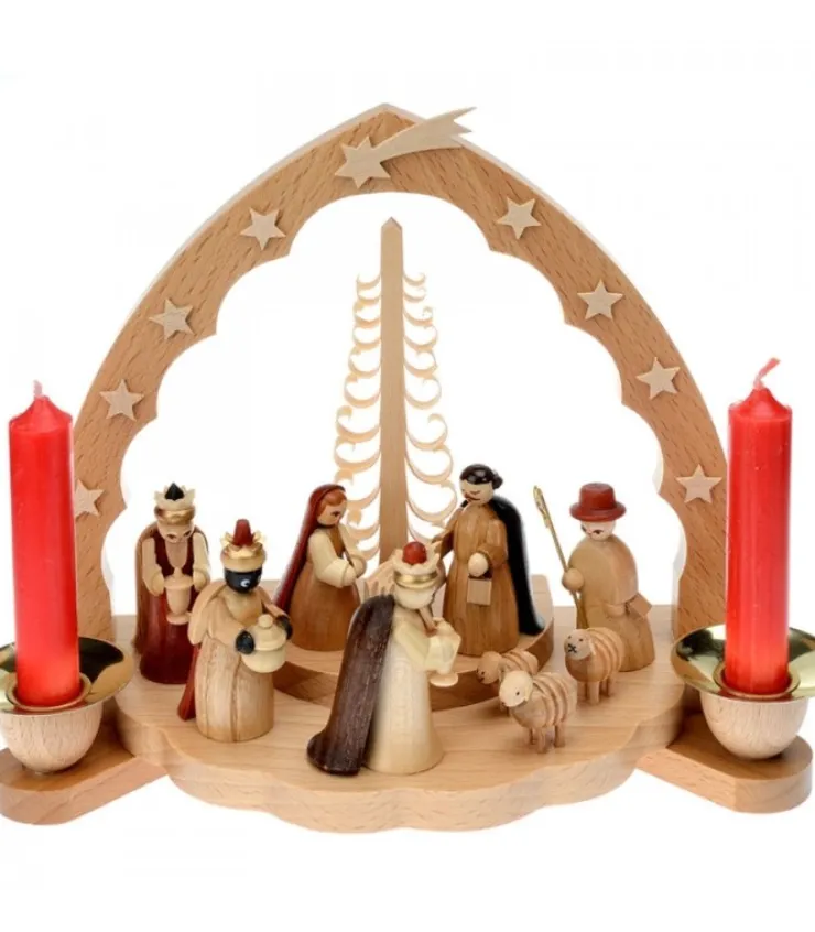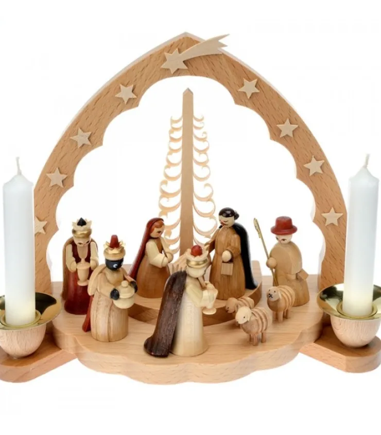 Richard Glasser, Pyramides de Noël allemandes Grande Crèche De Noël En Bois Avec Personnages