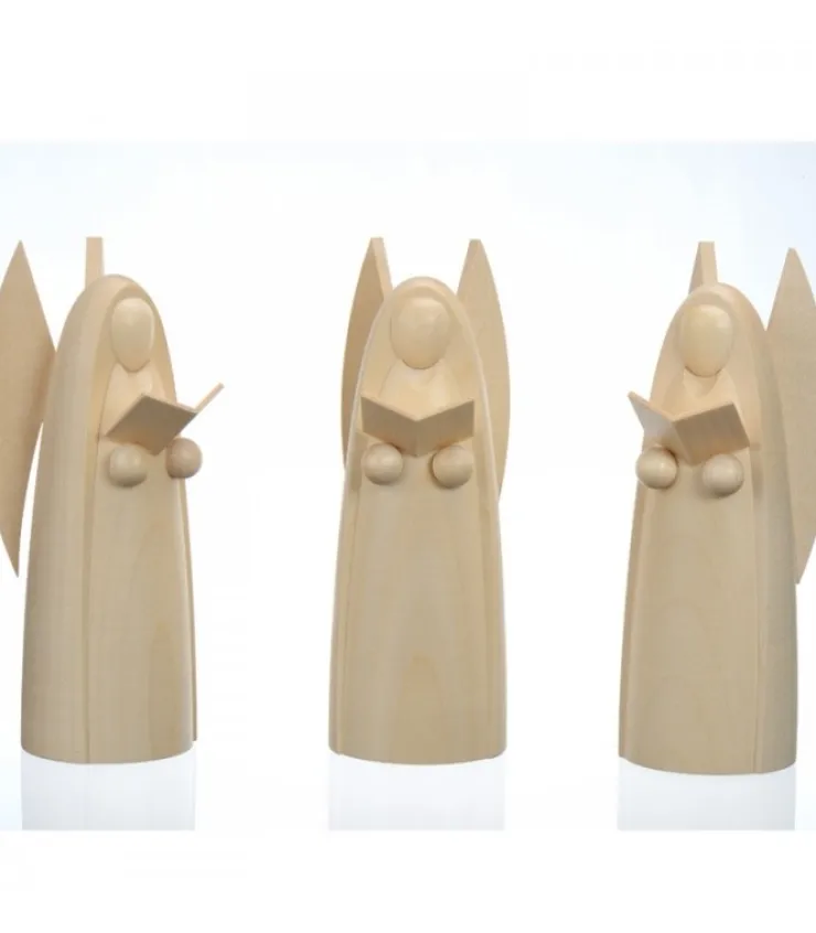 Figurines Crèche De Noël, Hauteur 12 Cm.Le Choeur De Trois Anges.Fabrication Artisanale En Bois D’Erable