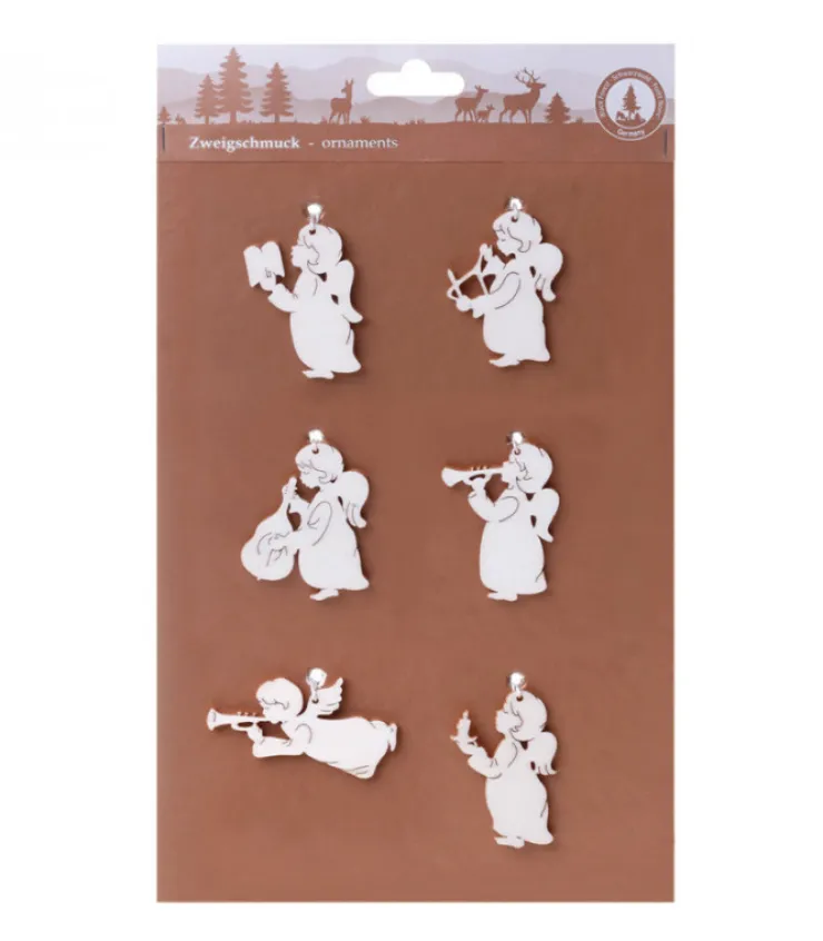 Ensemble De 6 Pendentifs Pour Décorations Sapin, En Bois De Peuplier.Motif : Petits Anges Dans Differentes Situations.F…