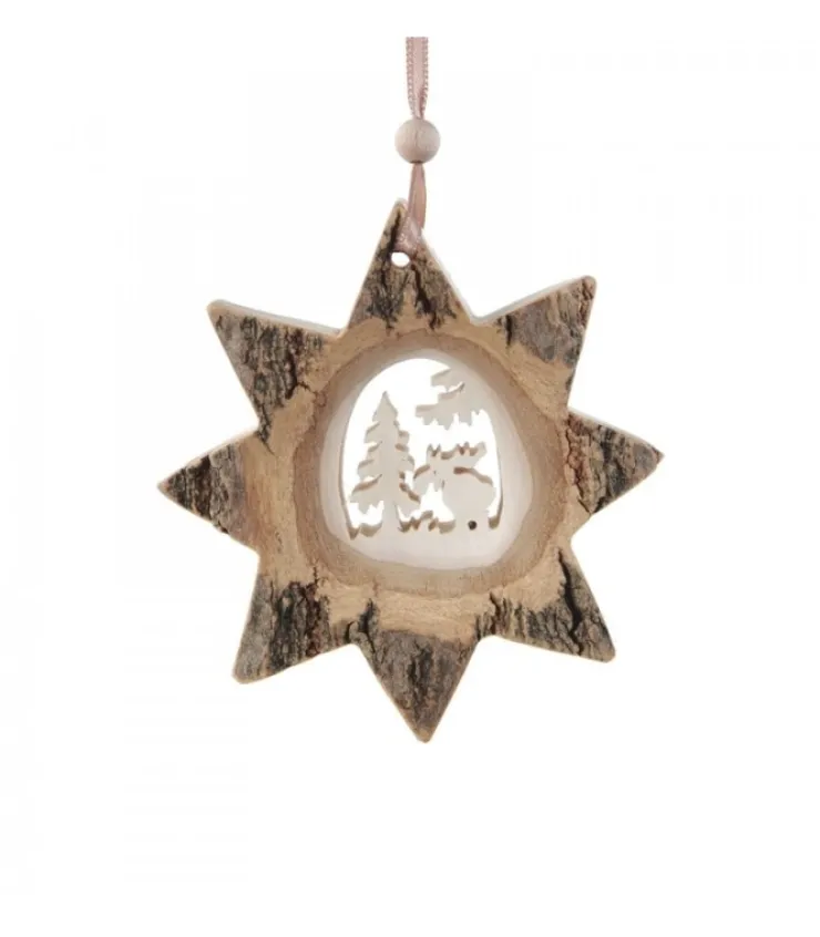 Etoile En Bois Pour Sapin De Noël.Motif Elan Cisele Dans L’Aubier.Fabrique A Partir D’Ecorce De Rondin De Bois.Fourni A…