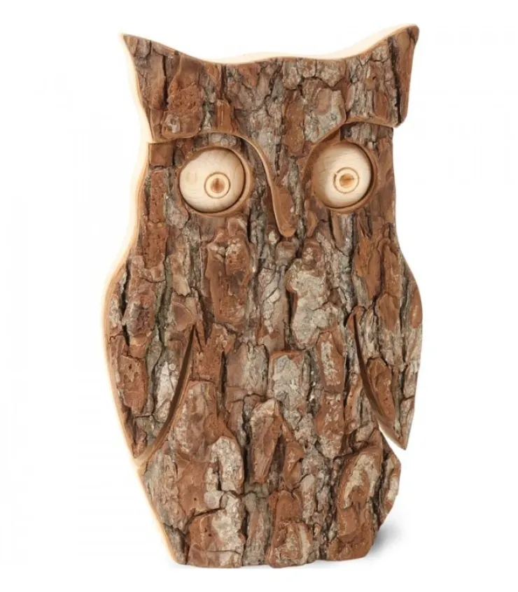 Hibou En Bois D’Ecorce, 16 Cm
